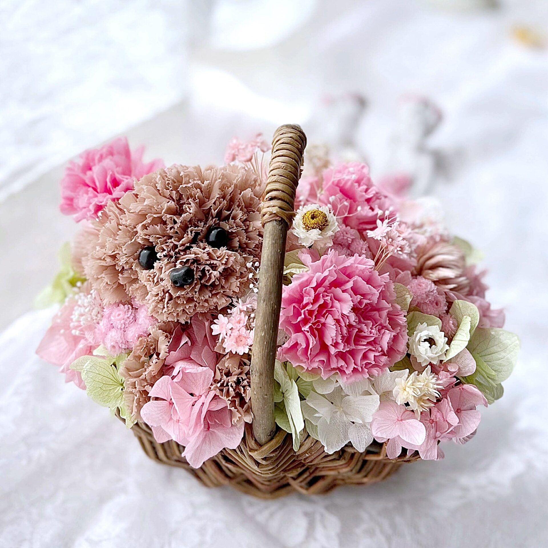 プリザーブドフラワーで犬や猫のアレンジを作っています。